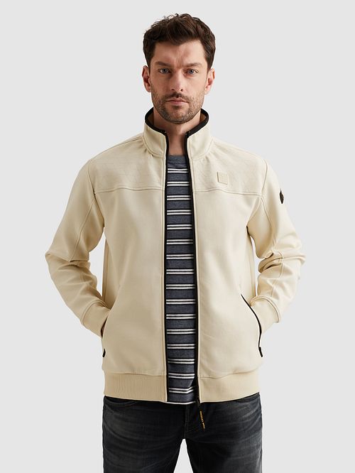 PME Legend Cardigan Interlock Ecru PME Legend Cardigan Interlock Ecru in the color Off-White and White with a fit Regular-Fit is made from Cotton, Polyester and Stretch with a Plain design and Long sleeves.